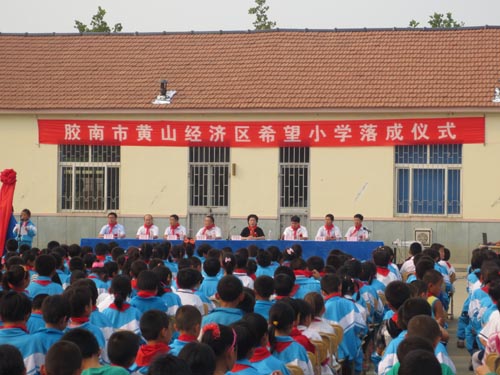 9月20日下午,秋高氣爽、陽光明媚,膠南市黃山經(jīng)濟區(qū)希望小學落成儀式在學校大操場隆重舉行。激昂的國歌聲后,少先隊員們?yōu)槌鱿I(lǐng)導敬獻紅領(lǐng)巾,以此來表達孩子們的崇高敬意。一位學生代表用稚嫩的童音道出了對青島海川建設(shè)集團及支持希望工程事業(yè)建設(shè)的各類愛心團體的誠摯感謝,和臺下上千名含苞待放,映襯在陽光里的一張張幸福笑臉一樣,他們都是祖國的未來和希望,也讓在場的每一位成年人對“捐資助教、功德無量”這句話有了更深刻的理解和感悟。黃山經(jīng)濟區(qū)希望小學校長懷著激動地心情向海川集團贈送錦旗一面,愛心助學的善舉也贏得了在場師生一次又一次熱烈的掌聲。集團黃中坡副總裁代表發(fā)言,他特別指出,今年恰逢集團成立60周年之際,本著“節(jié)儉辦大慶”和“注重社會公益性”的宗旨,集團將主要活動資金拿出來援建黃山經(jīng)濟區(qū)中心小學,另外發(fā)動企業(yè)職工向老一輩建筑人曾經(jīng)援建過的四川藏族甘孜地區(qū)捐獻衣物。通過一系列與社會接軌的主題活動,力爭將本次大慶辦得更有意義。最后他衷心希望膠南市黃山經(jīng)濟區(qū)中心小學的全體同學從小樹立遠大目標,刻苦學習,努力向上,爭做國家棟梁之才,立志回饋社會,報效祖國。青島團市委副書記張海軍和膠南市委副書記佟海燕也出席儀式并與海川集團黃中坡副總裁一起為希望小學揭牌,同時就海川集團對教育公益事業(yè)的傾情參與和大力支持給予了充分肯定和高度評價。