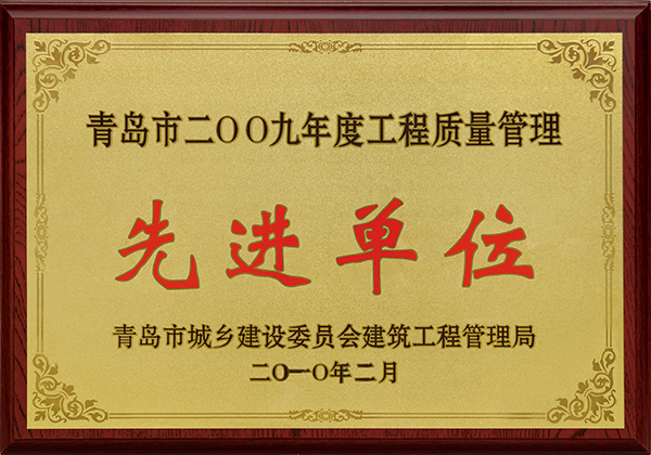 2009工程質(zhì)量管理先進(jìn)單位